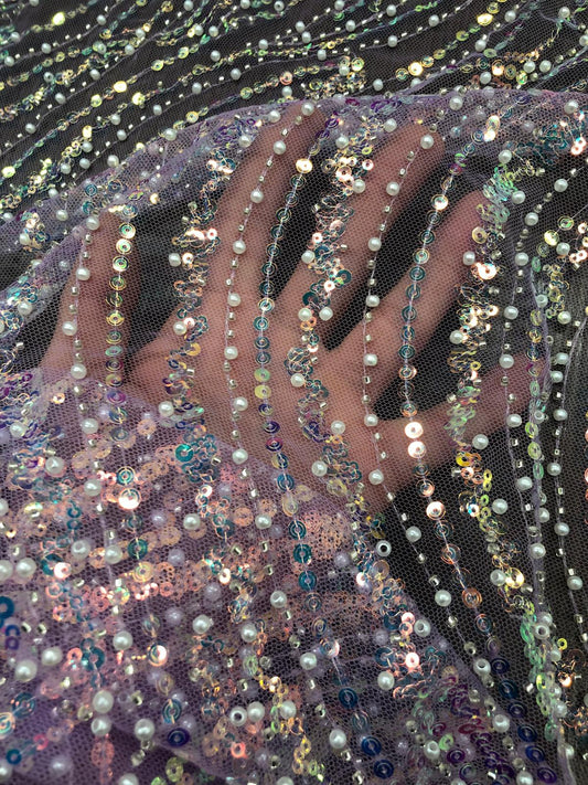 Broderie accesorizata cu paiete si margele, Mov Lila - MODEL BEAUTY