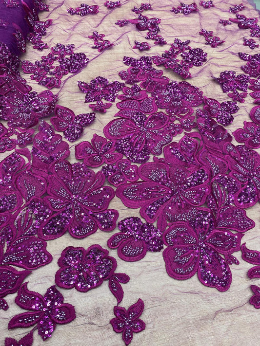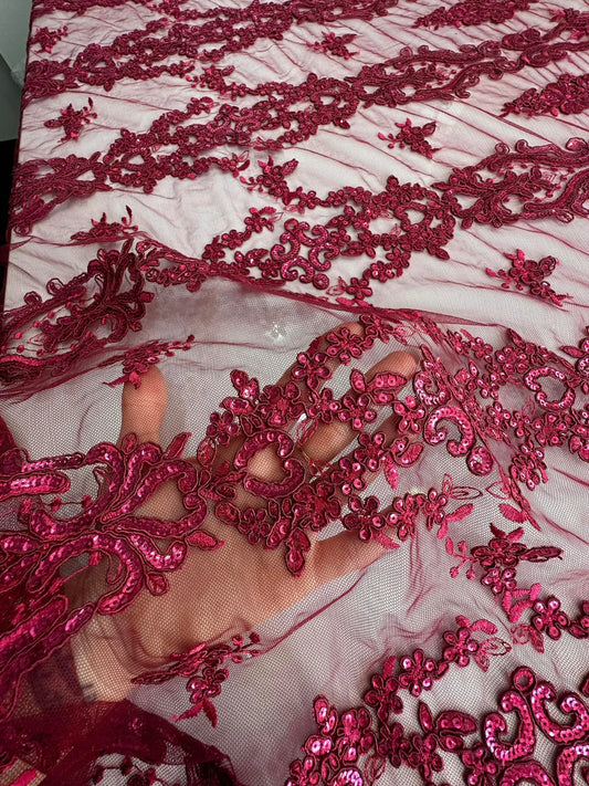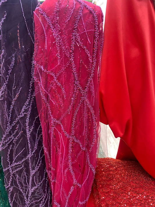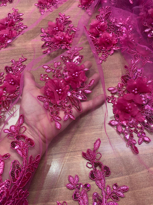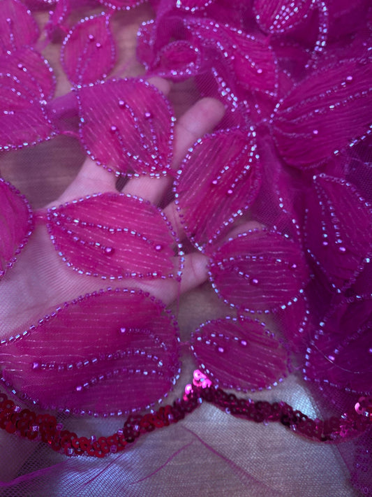 Tulle brodat, accesorizat cu paiete, Magenta