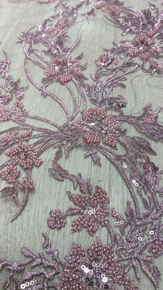 Broderie accesorizata cu paiete si margele , Roz pudra - MODEL ROSE