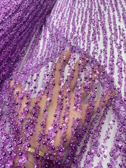 Broderie accesorizata cu paiete si margele, Mov Lila - MODEL BEAUTY