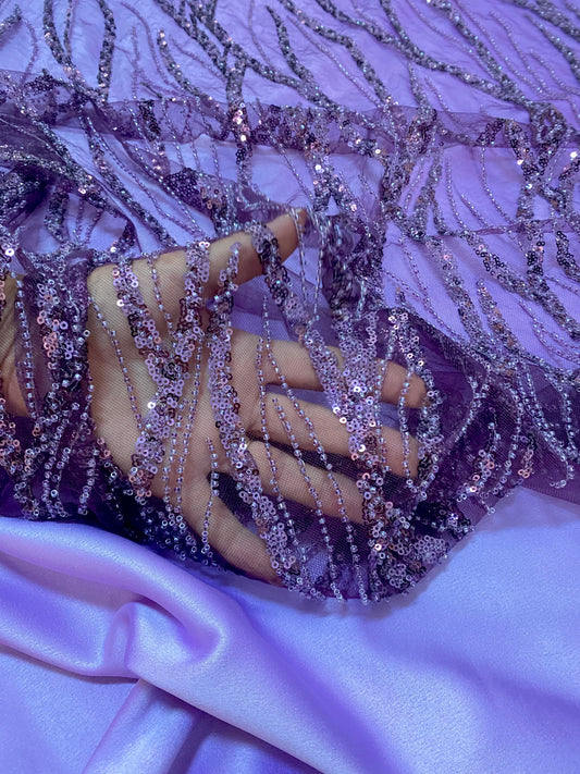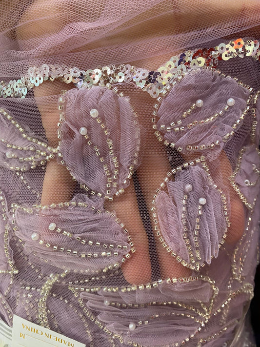 Broderie accesorizata cu paiete si margele ,Mov Lila - MODEL CLEO