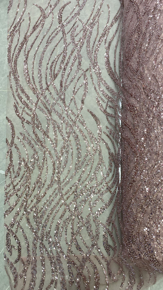 Broderie accesorizata cu paiete si margele, Roz pudra - MODEL ARRY