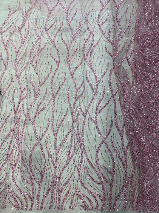 Broderie accesorizata cu paiete si margele, Roz - MODEL BEAUTY