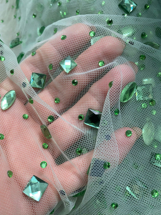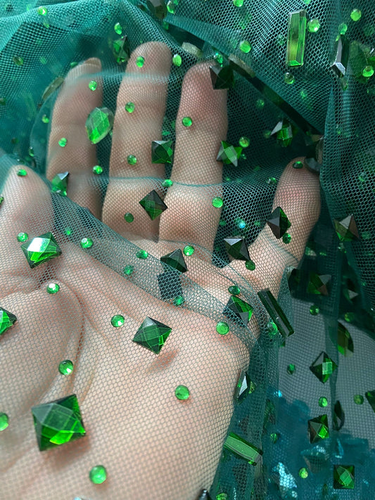Tulle accesorizat cu pietre si cristale ,Verde- MODEL KATE