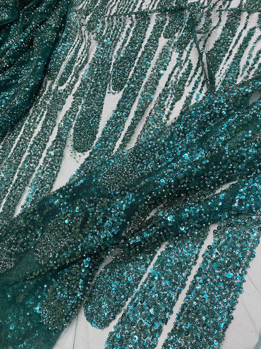 Broderie accesorizata cu paiete si margele, Verde - MODEL BEAUTY