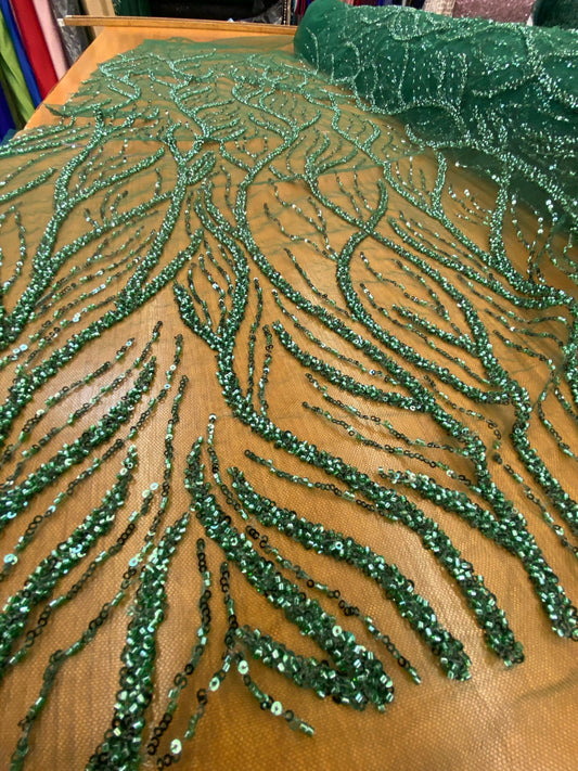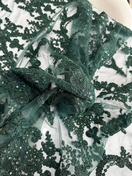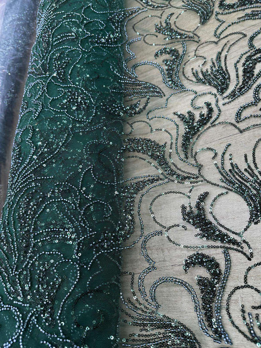 Tulle accesorizat cu paiete si margele, Verde/ MODEL BIG