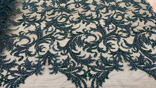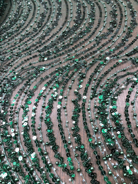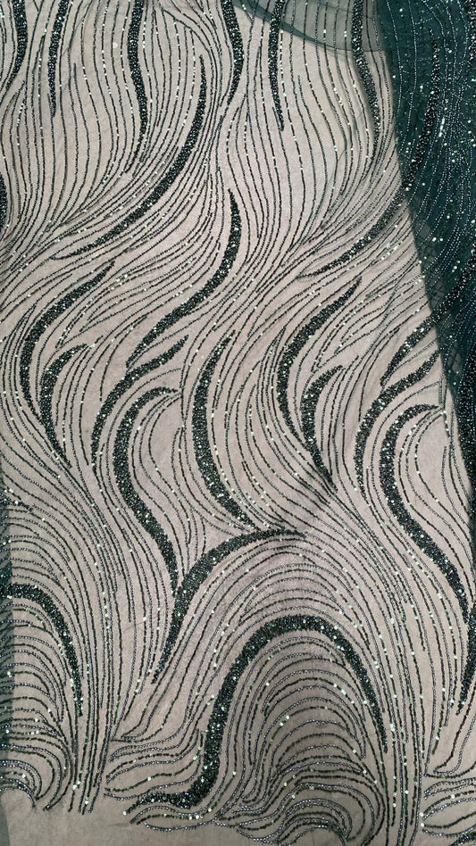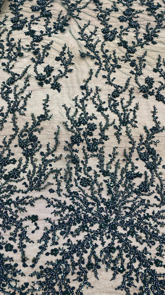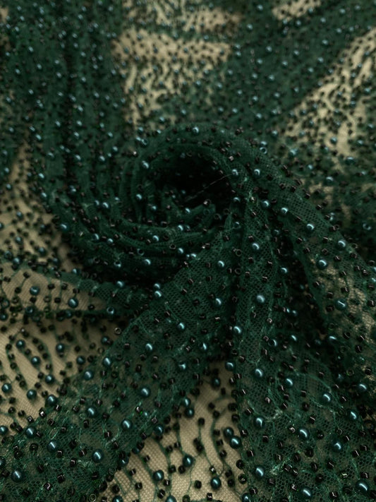 Tulle accesorizat cu perle si margele tubulare , Verde - MODEL HACER
