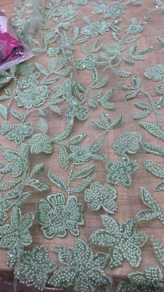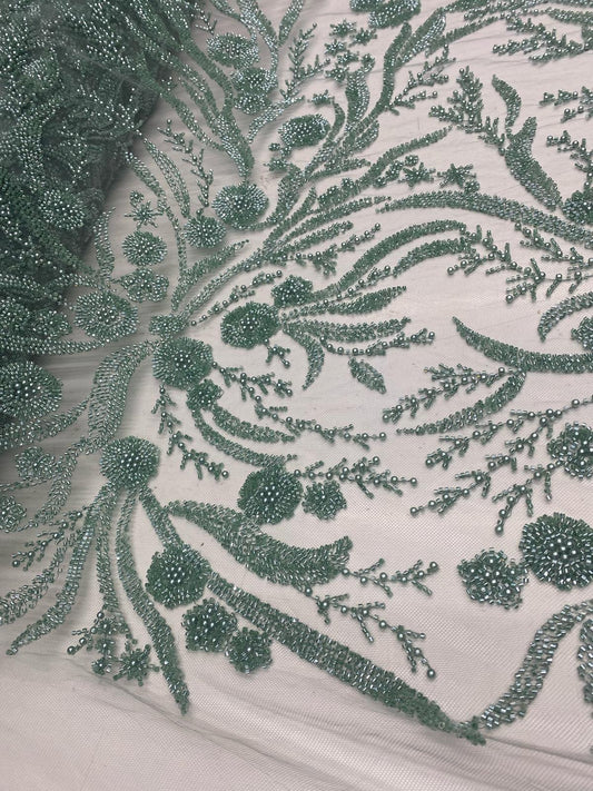 Broderie accesorizata cu margele, Verde Mint - MODEL SONIA