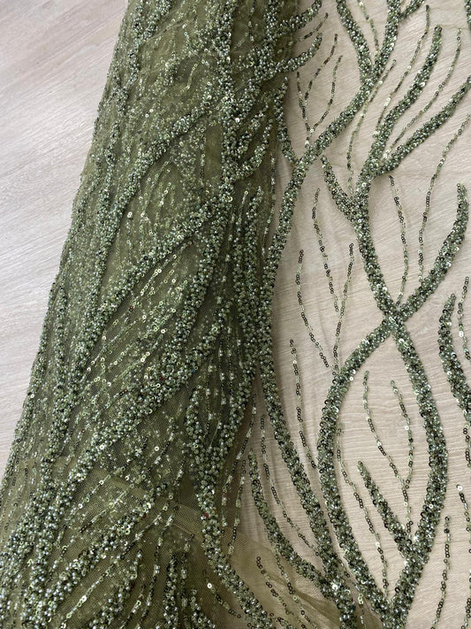 Broderie accesorizata cu paiete si margele, Verde Olive - MODEL BEAUTY