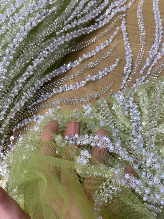 Broderie accesorizată cu paiete si mărgele, Verde lime, Model AVA