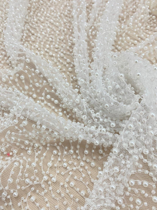 Tulle accesorizat cu perle si margele tubulare , Alb - MODEL HACER