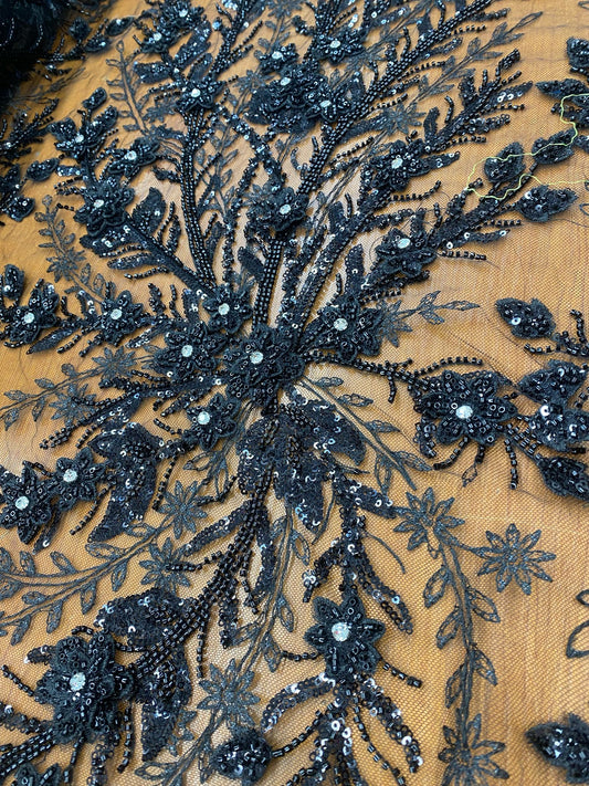 Broderie accesorizata cu paiete si margele, Negru - MODEL DELI