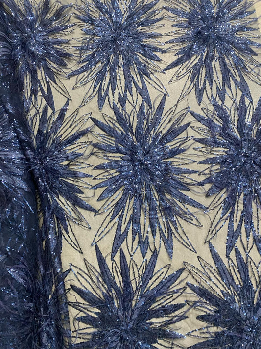 Broderie accesorizata cu paiete si margele , Albastru Royal - MODEL EVE