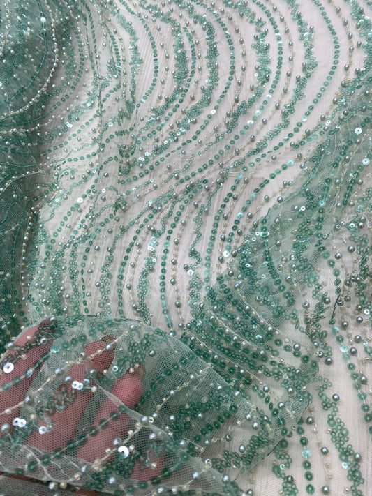 Broderie accesorizata cu paiete si margele, Verde Aqua - MODEL EMY