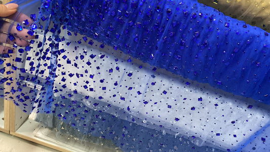 Tulle accesorizat cu pietre si cristale ,Albastru Royal - MODEL KATE