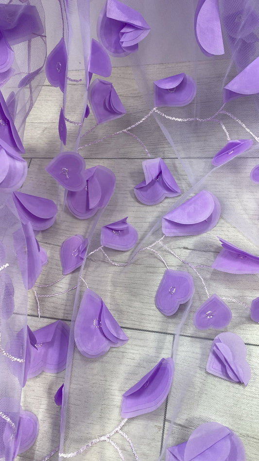 Tulle accesorizat cu aplicatii din organza , Mov Lila