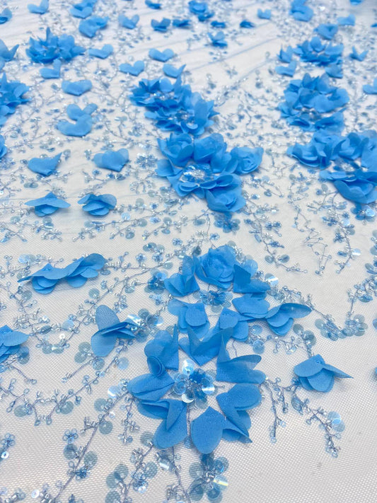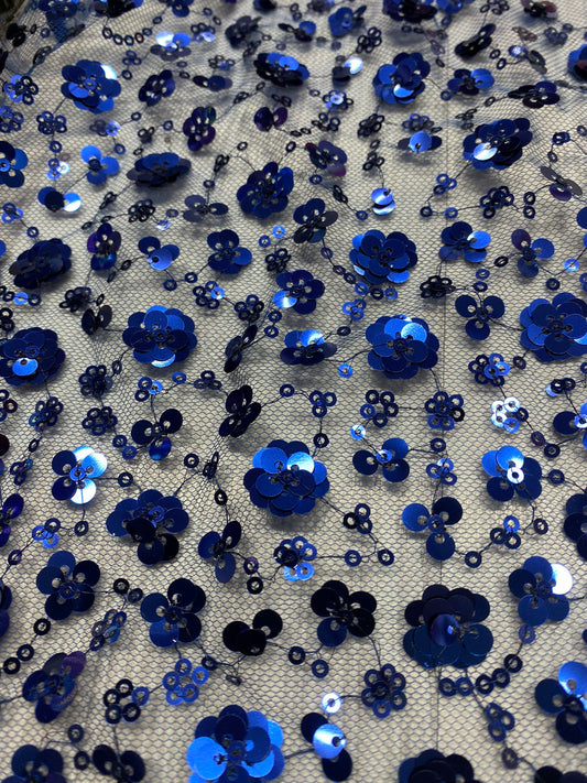 Tulle accesorizat cu floricele din paiete ,Albastru