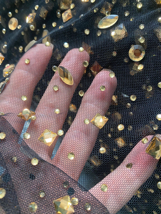 Tulle negru, accesorizat cu pietre si cristale aurii - MODEL KATE