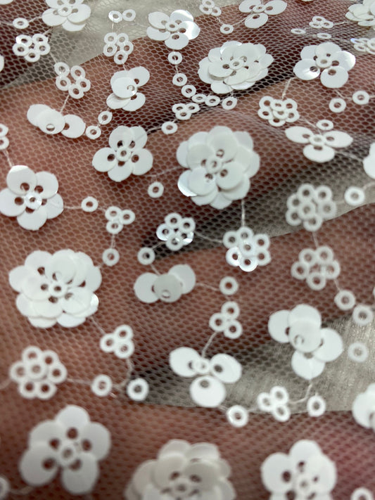 Tulle accesorizat cu floricele din paiete , Alb