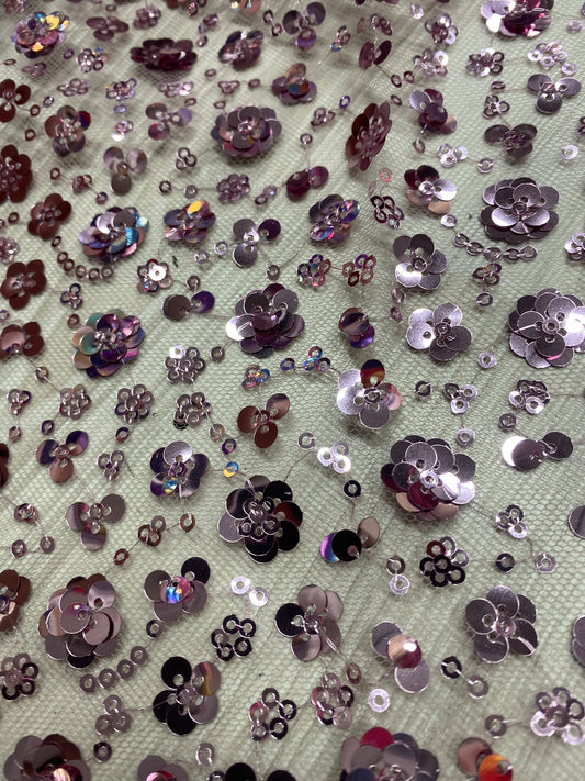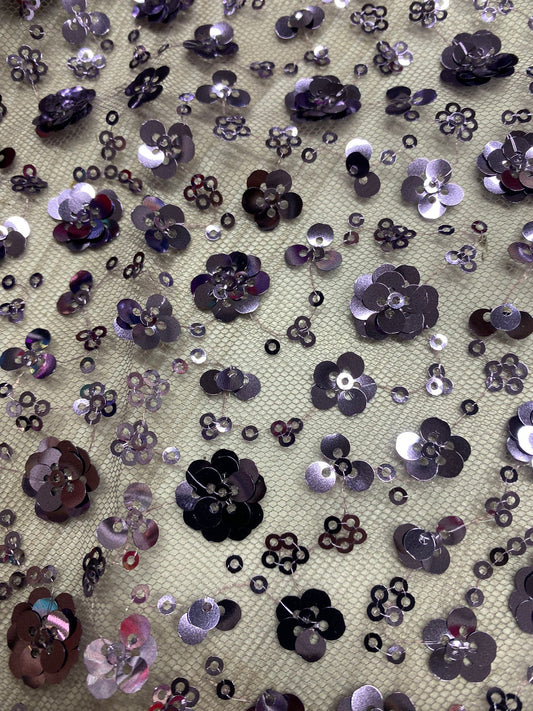 Tulle accesorizat cu floricele din paiete ,Mov