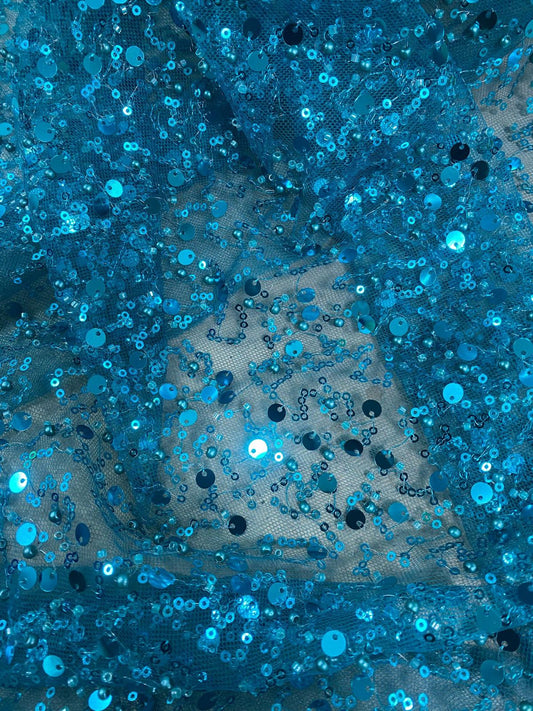 Tulle accesorizat cu paiete si margele , Turqoise - MODEL BIG
