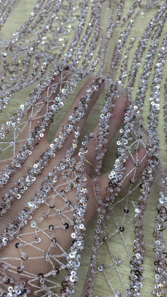 Broderie accesorizata cu paiete si margele, Roz pudra - MODEL AHIRA