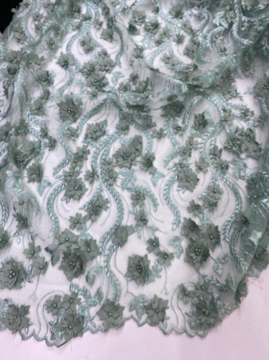 Broderie accesorizata cu flori 3D , margele si paiete , Turqoise - MODEL ALIMA