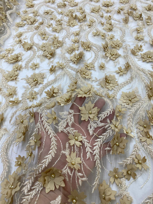 Tulle accesorizat cu floricele din paiete , Auriu