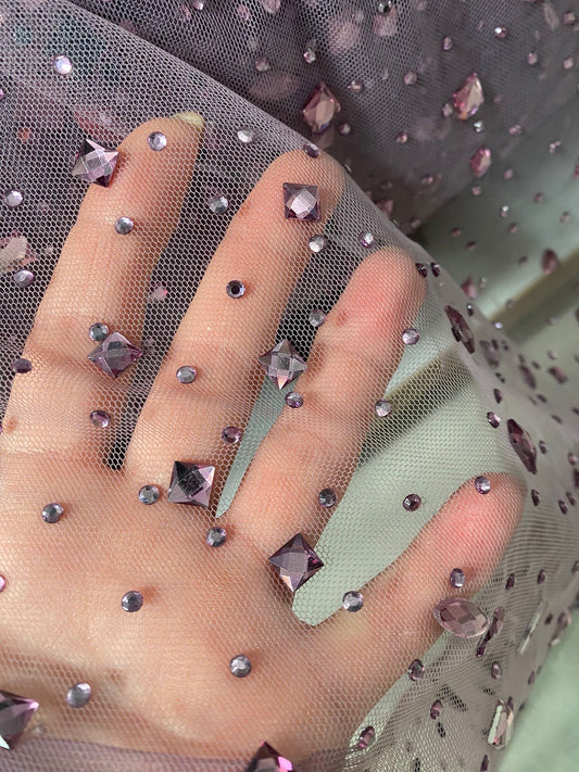 Tulle accesorizat cu pietre si cristale , Mov Lila - MODEL KATE