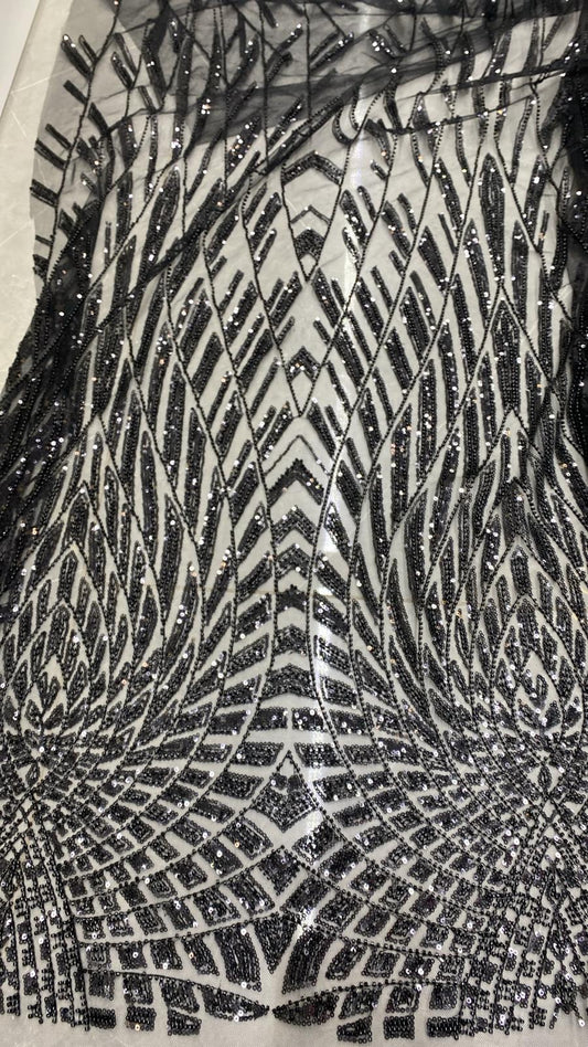 Broderie accesorizata cu paiete si margele, Negru - MODEL LIA