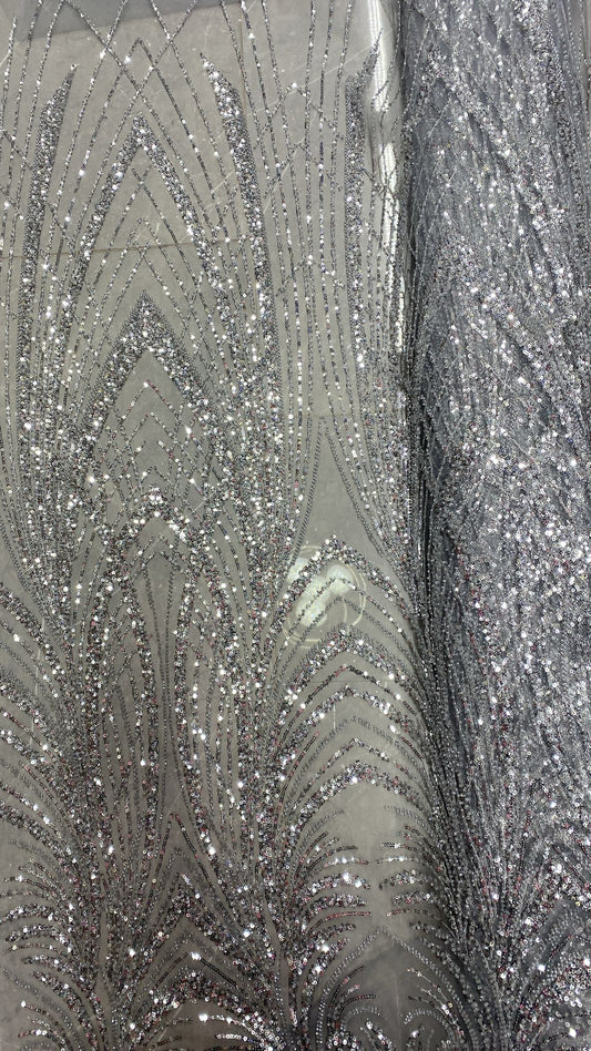 Broderie accesorizata cu paiete si margele, Argintiu - MODEL LIA