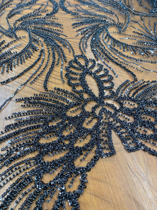 Broderie accesorizata cu paiete si margele, Negru - MODEL NUR