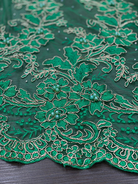 Broderie pe tulle cu margele, Verde, model 3D
