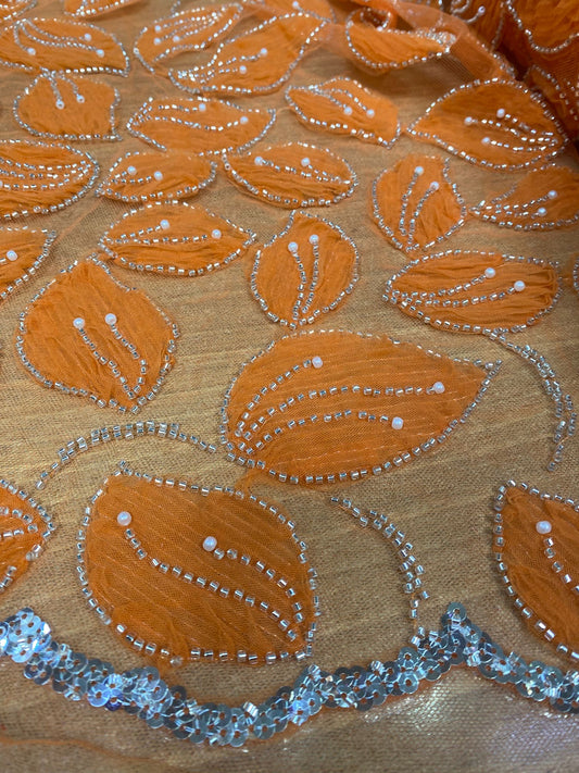Broderie accesorizata cu margele, Portocaliu, Model CANDI