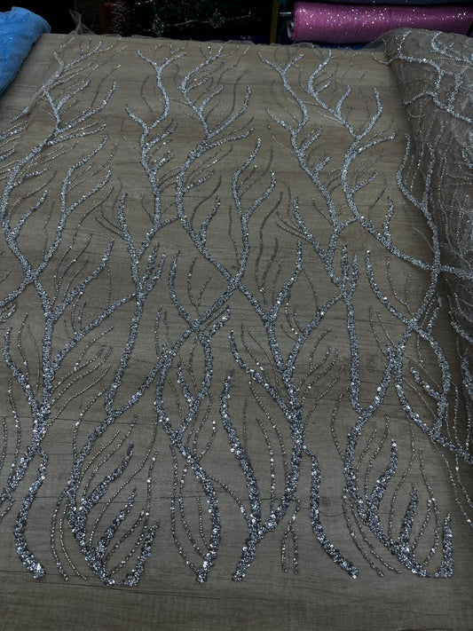 Broderie accesorizata cu margele, paiete si margele tubulare , Argintiu -MODEL Butterfly