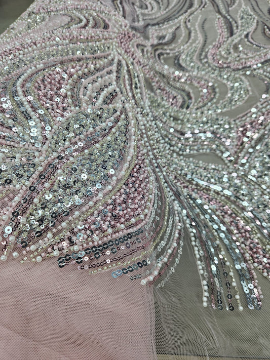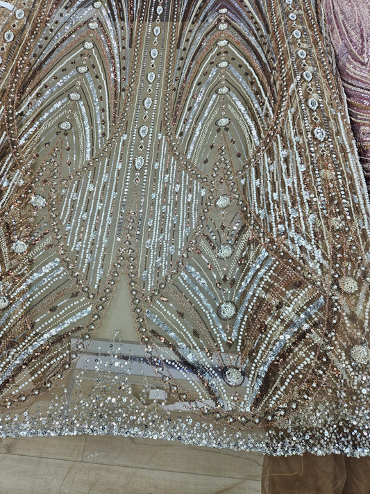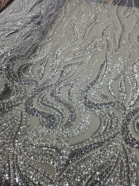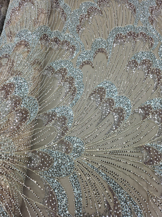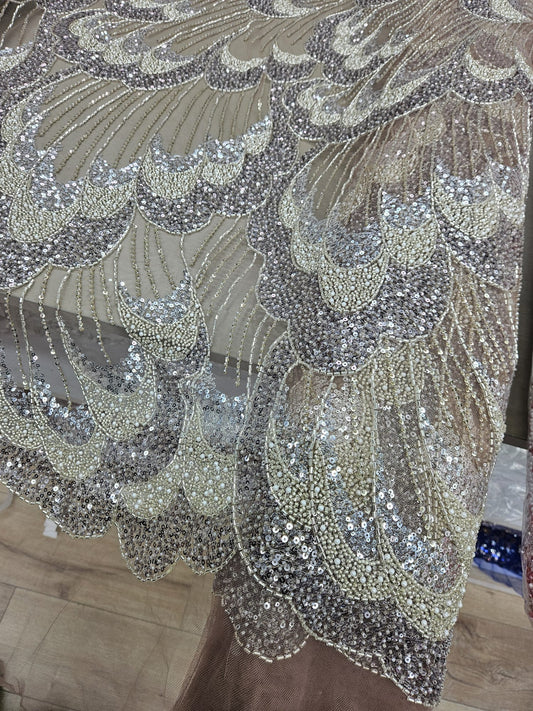 Broderie accesorizata cu paiete si margele argintii pe tulle nude - MODEL SOFY