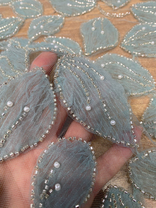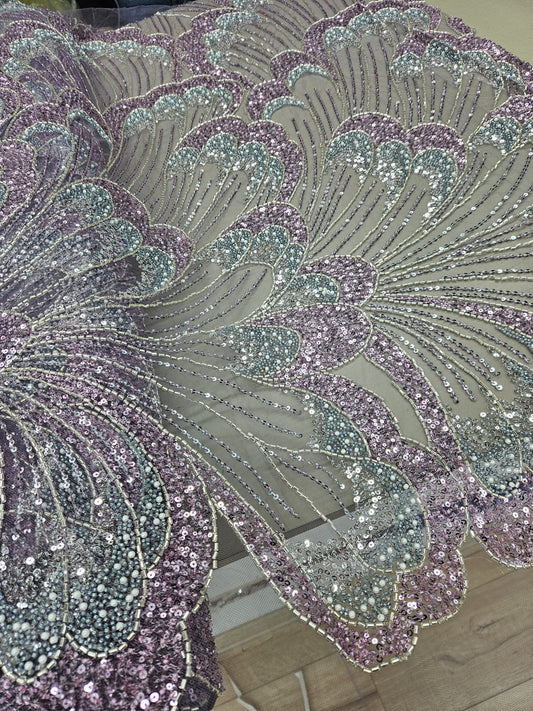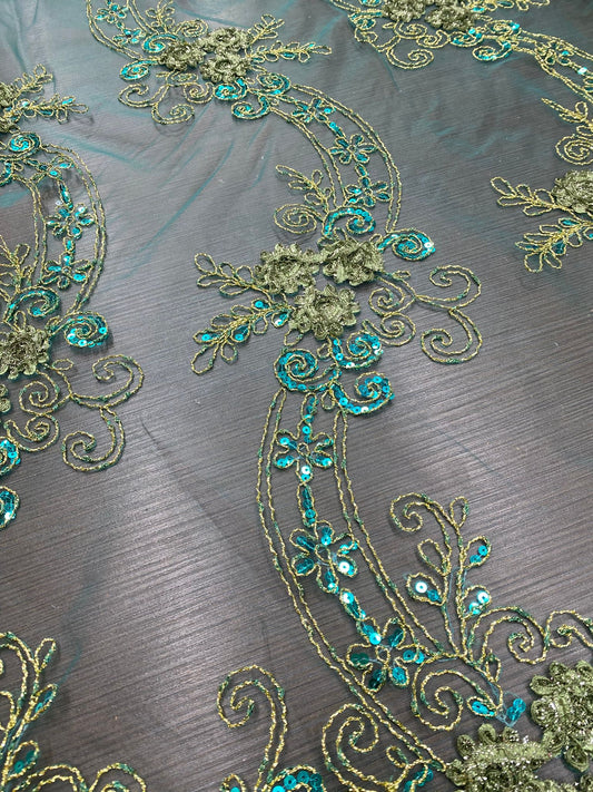Broderie pe tulle Turqoise cu paiete fir lame, model 3D