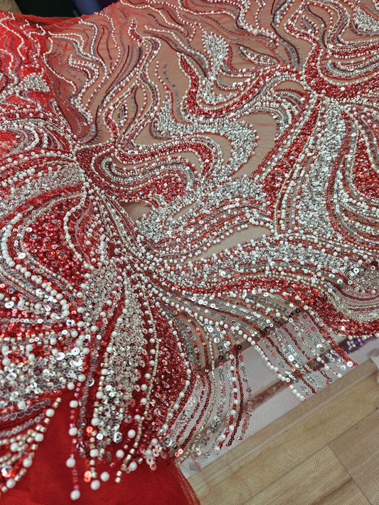 Broderie accesorizata cu margele, paiete si margele tubulare , Rosu -MODEL ERIKA
