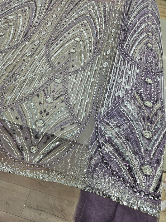 Broderie accesorizata cu margele, paiete si margele tubulare , Mov -MODEL ERIKA