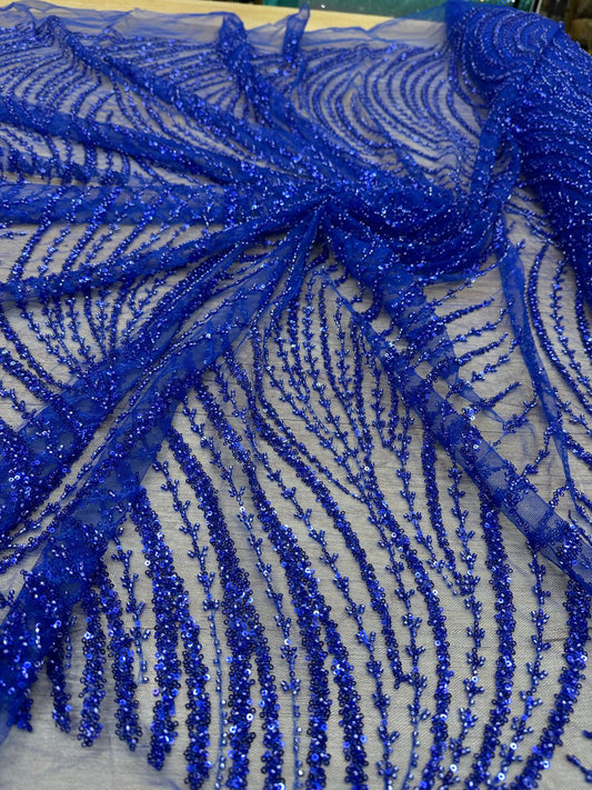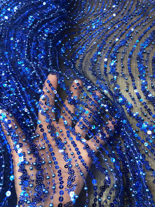 Broderie accesorizata cu paiete si margele, Albastru Royal - MODEL ARRY