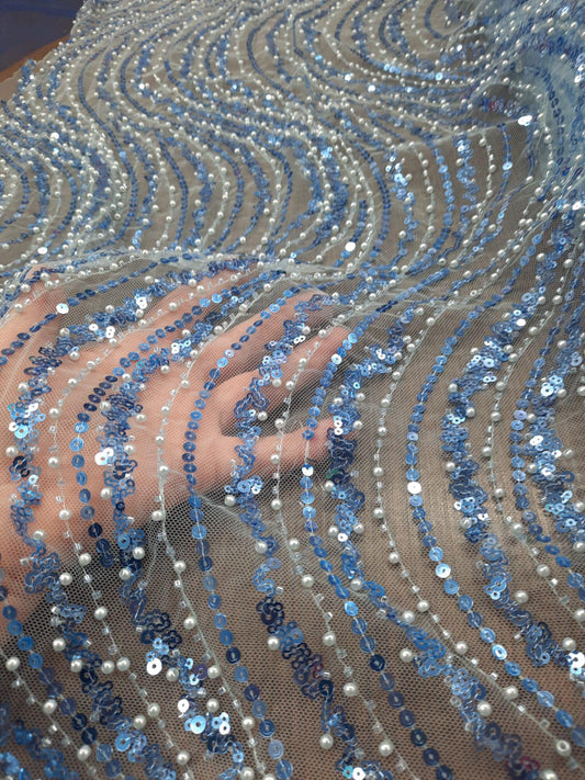 Broderie accesorizata cu paiete si margele, Blue - MODEL ARRY
