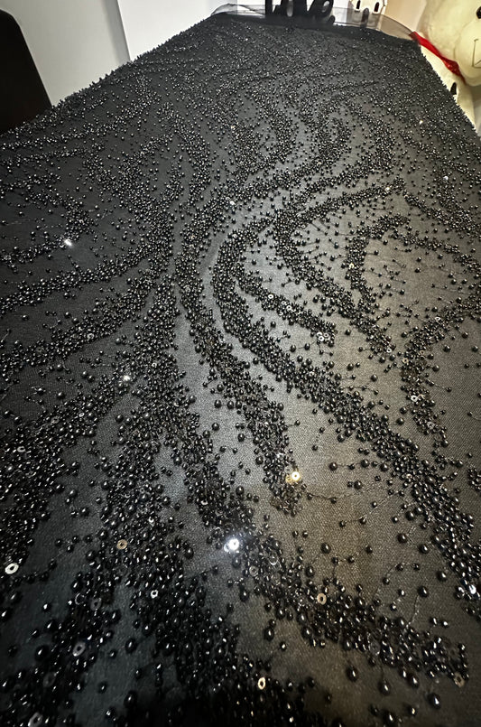 Broderie accesorizata cu paiete si margele, Negru - MODEL ELLA
