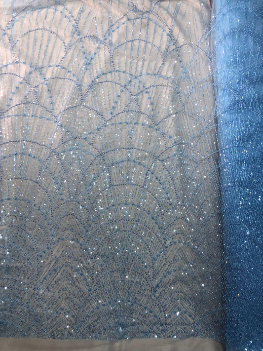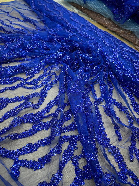 Broderie accesorizata cu paiete argintii , pe suport de tulle Albastru Royal - MODEL AZIZE