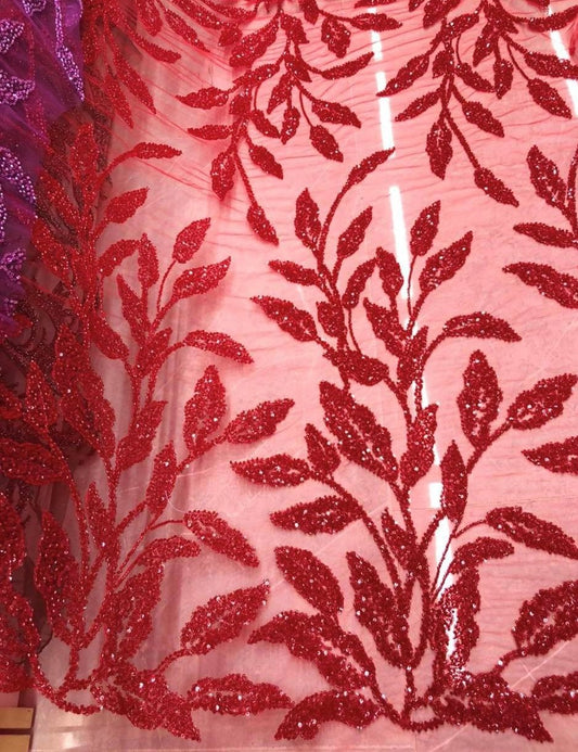 Tulle accesorizat cu paiete si margele , Rosu / MODEL BIG