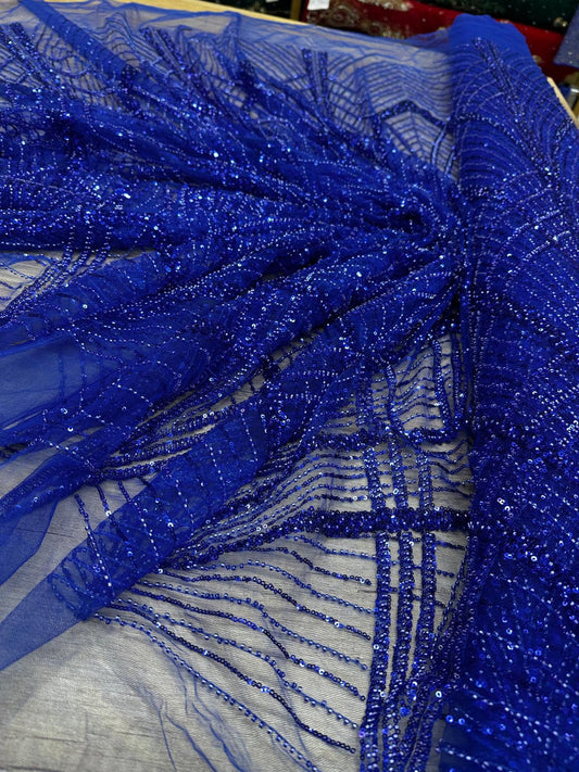 Broderie accesorizata cu paiete si margele, Albastru royal - MODEL SELLY