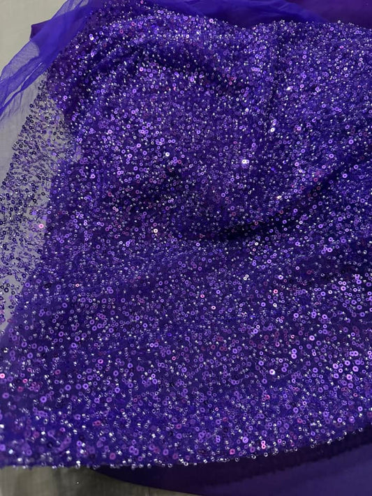 Tulle accesorizat cu paiete si margele mici , Mov - MODEL SMALL