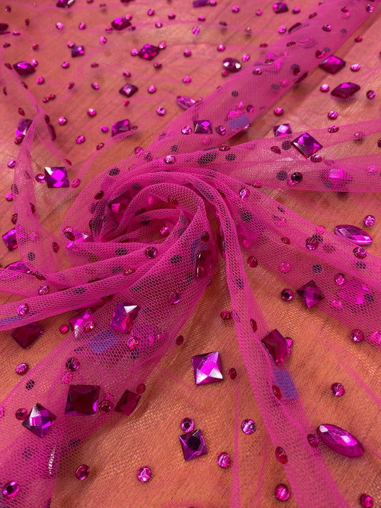 Tulle accesorizat cu pietre si cristale , Magenta - MODEL SEDA