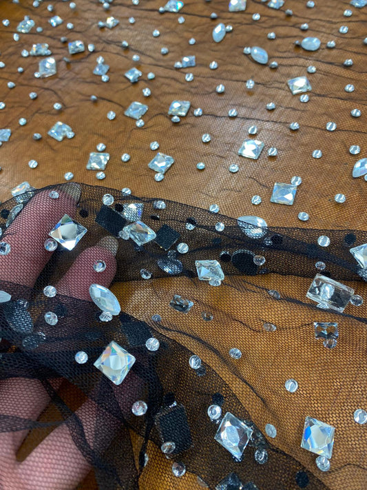 Tulle accesorizat cu pietre si cristale ,Negru - MODEL SEDA
