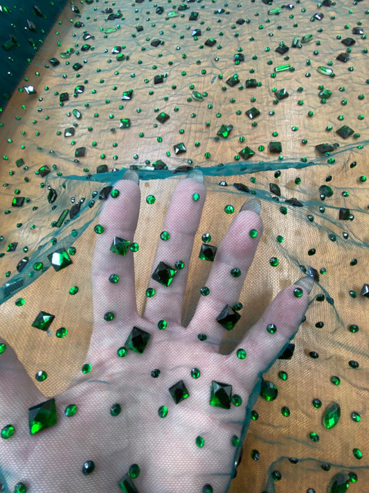 Tulle accesorizat cu pietre si cristale , Verde - MODEL SEDA