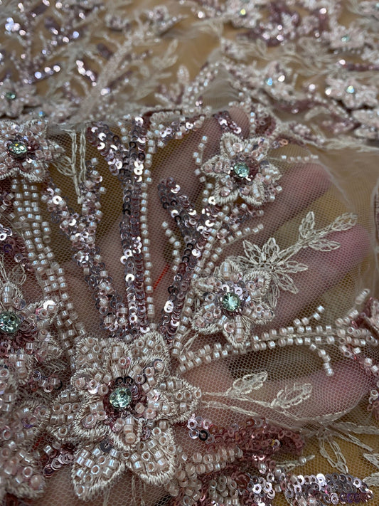 Broderie accesorizata cu paiete si margele , Roz Pudra - MODEL BIA